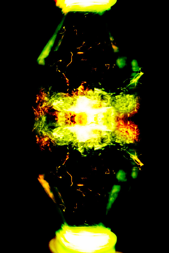 ペットボトルに水を少し入れ、懐中電灯をフタにぴったりくっつけて振って撮影。